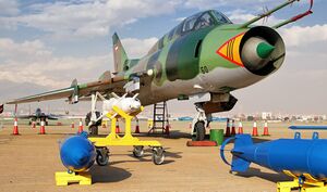 The AFAGIR also operates a sizable rotary-wing force consisting of around twenty Mi-171 helicopters for transport and armed assault roles, and a large transport force out of Shiraz, equipped with around fifteen ex-Iraqi Il-76s (originally operated by the IRIAF) and twelve An-74TK-200 transports.[4] Scramble backs up this picture in general, reporting An-74s, An-14s, and Su-25Ks at Tehran Mehrabad, Chengdu F-7Ms at Zahedan (while saying that MFI-17s were often reported at Zahedan incorrectly), and Il-76 AEW variants at Shiraz Shahid Dastghaib International Airport, while saying that they might be based at Mehrabad. Scramble also said that an unknown number of "new" Su-25s were delivered in 2003.[5]