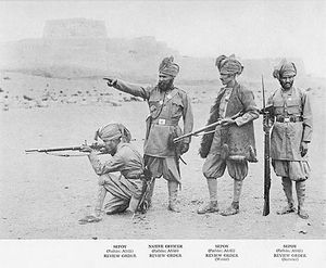 The roots of the Pakistan army traces back to the British Indian Army which included several personnel from present day Pakistan. In picture are troops of the famous Khyber Rifles striking a pose. ~1895.