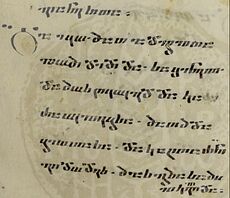 Nuskhuri (بالجورجية: ნუსხური, ⴌⴓⴑⴞⴓⴐⴈ; النطق الجورجي: []) is the second Georgian script. The name nuskhuri comes from nuskha (ნუსხა), meaning "inventory" or "schedule". Nuskhuri was soon augmented with Asomtavruli illuminated capitals in religious manuscripts. The combination is called Khutsuri (بالجورجية: ხუცური, Ⴞⴓⴚⴓⴐⴈ; "clerical", from khutsesi (ხუცესი "cleric"), and it was principally used in hagiography.[42]