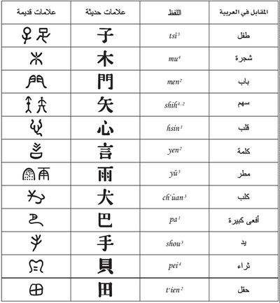 أشكال صورية بالصيغتين الصينيتين القديمة والحديثة.