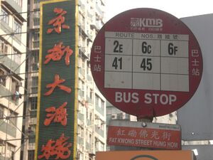 Chinese written from top-to-bottom on restaurant and bus stop signs in Hong Kong