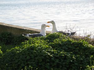 ![]() الزهور في الكتراز. يظهر في الخلفية المبنى الاجتماعي، الذي دمره حريق أثناء احتلال الأمريكان الأصليين للجزيرة. | |