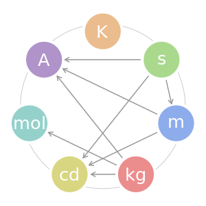 1. ^ Historically, both the kilogram and the Kelvin are derived from physical properties of water, while the second is based on the second is historically derived from the length of the solar day on Earth.