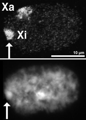 كان هناك اعتقاد سائد في السابق ان الأنثى بصفتها تمتلك اثنين من كروموسوم X وبالتالي نسختين من كل مورثة محمولة في طيات كل كروموسوم فان احد الكروموسومين يكون غير فعالا وليس له دور يذكر ولكن ابحاثا اجريت مؤخرا في عام 2005 اشارت إلى احتمالية كون الكروموسومين كلاهما نشيطين في عملية وراثة الصفات.