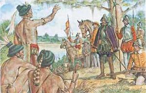 هيرناندو دي سوتو مكتشف أسباني قابل القبائل الهندية خلال الرحلة الاستطلاعية الأوروبية الأولى ليصل إلى نهر المسيسيبي بأمريكا ـ وقد بدأ الأسبان رحلاتهم عام 1539م من الموقع الحالي لغربي فلوريدا ـ وتمكن من الوصول إلى النهر في مايو عام 1541م.