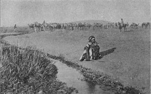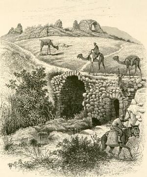 Edward Robinson visited in 1838, and noted that the khan, which Maundrell commented on, was for the accommodation of the caravans passing on the great road between Egypt and Damascus which comes from the western plain along the coast, over the hills to Lajjun, and enters the plain of Esdraelon.[64] When the British consul James Finn visited the area in the mid-19th century, he did not see a village.[65] The authors of the Survey of Western Palestine also noticed a khan, south of the ruins of Lajjun in the early 1880s.[66] Gottlieb Schumacher saw caravans resting at the Lajjun stream in the early 1900s.[67]