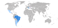 In 2009, the Brazilian city of Serafina Corrêa, in the state of Rio Grande do Sul, gave Talian a joint official status alongside Portuguese.[26][27] Until the middle of the 20th century, Venetian was also spoken on the Greek Island of Corfu, which had long been under the rule of the Republic of Venice. Moreover, Venetian had been adopted by a large proportion of the population of Cephalonia, one of the Ionian Islands, because the island was part of the Stato da Màr for almost three centuries.[28]