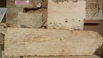 Coins from Side were first discovered in the 19th century, which bore legends in a then-unknown script. In 1914, an altar came to light in Side with a Greek inscription and a Sidetic one, but the latter could not be deciphered. It was only after the discovery of a second Greek-Sidetic bilingual inscription in 1949, that Hellmut Theodor Bossert was able to identify 14 letters of the Sidetic script using the two bilinguals.[1] In 1964 a large stone block was unearthed near the east gate of Side, with two longer Sidetic texts, including loan words from Greek (istratag from στρατηγός, 'commander' and anathema- from ἀνάθημα, 'votive offering'). In 1972, a text was found outside Side for the first time, at the neighbouring town of Lyrbe-Seleukia. Currently, eleven Sidetic coins and several coins with Sidetic legends are known.