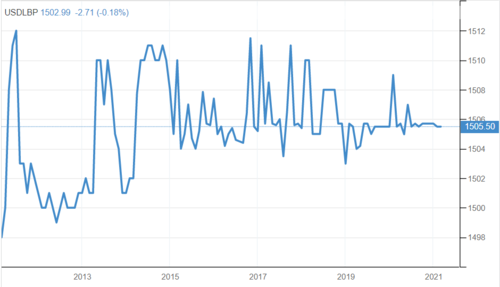 - ^ "Lebanese Pound". tradingeconomics.com. 2021-03-02. Retrieved 2021-03-02.