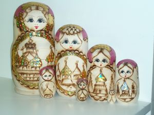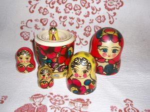 ماتريوشكا Matryoshka doll (روسية: Матрёшка) تشتق تسمية الماتريوشكا عن اسم ماتريونا النسائي. وانها عبارة عن دمية مزخرفة توضع في داخلها دمى اقل حجما.