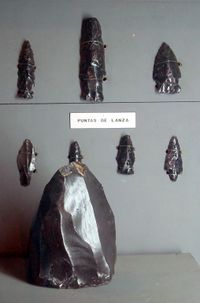 Obsidian spearheads with a lithic core, Takalik Abaj