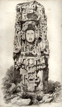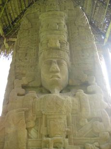 النصب D من كيريگوا، يمثل الملك Kʼakʼ Tiliw Chan Yopaat[8]