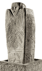 Most kurgan stelae found in Pontic-Caspian steppe feature a man wearing with a belt and weapons carved on the stone. In later Indo-European traditions, notably the (half-)naked warrior figures of Germanic and Celtic art, *kóryos raiders wore a belt that bound them to their leader and the gods, and little else. The tradition of kurgan stelae featuring warriors with a belt is also common in Scythian cultures.[86] A continuity of an "animal-shaped raid culture" has been also postulated based on various elements attested in later Indo-European-speaking cultures, such as the Germanic Berserkers, the Italic Ver Sacrum, and the Spartan Crypteia,[95][96] as well as in the mythical Celtic fianna and Vedic Maruts,[97] and in the legend of the werewolf ("man-wolf"), found in Greek, Germanic, Baltic and Slavic traditions alike.[98][99]