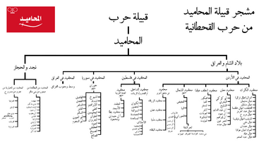 المحاميد هي من أكبر القبائل المتواجدة في سوريا وتحديداً في محافظة درعا[26] وأبرزها منطقة صيدا ولهم أفرع كثيرة في حوران، عاد بعضاُ منهم إلى أم الفحم ثم الكرك ثم إلى معان[27] في الأردن، ومن أبرز مشايخهم الشيخ فاضل المحاميد[28] نائب عن حوران بالعهد العثماني وأولاده مزيد نائب حوران بعد أبيه وأحمد مختار درعا.