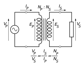 إذا زاد الجهد فإن التيار ينخفض بنفس النسبة. وتنتقل المعاوقة في إحدى الدائرتين متناسبة مع مربع نسبة أعداد اللفات. [4]