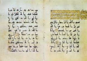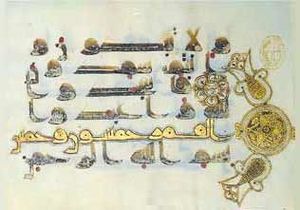 من بين أندر مخطوطات المصاحف في العالم صفحة رائعة من مخطوط قرآني متميّز كتب على الرّقّ الأزرق النفيس النّادر بالخط الكوفي المذهب فأصبح آية من آيات الفن الإسلامي الرفيع، ويعتقد أنها كتبت بمدينة القيروان بأمر من الخليفة العباسي المأمون، ولكنها لم ترسل إلى بغداد وحُبست في مدينة القيروان. وهناك صفحة نادرة أخرى من مخطوط قرآني كتب على الرق بالخط الكوفي المغربي المجوَّد وأدخلت عليها النقاط الحمراء لتشكيلها والخطوط المائلة الصغيرة لفك إعجام الأحرف. وتعدّ صفحة هذا المخطوط من أوائل المخطوطات التي تحولت الخطوط المائلة الصغيرة فيها، فيما بعد، إلى نقاط لتمييز الحروف العربية المتشابهة. وهناك صفحات نادرة من مخطوط قرآني ينسب إلى أسبانيا، كتبت على الرق المصقول المجوَّد بالخط المغربي المطوّر بعد إدخال الإعجام الكامل على الحروف العربية (التنقيط) والتشكيل. وتتميز صفحات هذا المخطوط بأن المذهّب شغل فواصل الآيات وبداية السور بالنقاط والحليات الذهبية.