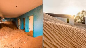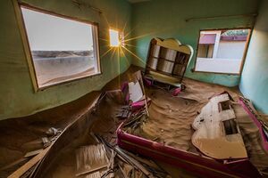 ![]() "البلدة القديمة" أو "بلدة الأشباح في المدام" مغطاة بالكثبان الرملية | |
