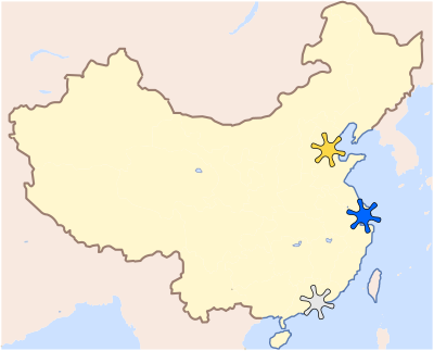 Municipality: Shanghai Jiangsu: Nanjing, Wuxi, Changzhou, Suzhou, Nantong, Yancheng, Yangzhou, Zhenjiang, Taizhou Zhejiang: Hangzhou, Ningbo, Jiaxing, Huzhou, Shaoxing, Jinhua, Zhoushan, Taizhou Anhui: Hefei, Wuhu, Ma'anshan, Tongling, Anqing, Chuzhou, Chizhou, Xuancheng |