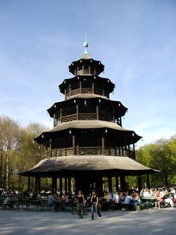 Chinesischer Turm (Chinese Tower) in the Englischer Garten, Munich, Germany. The initial structure was built 1789–1790.