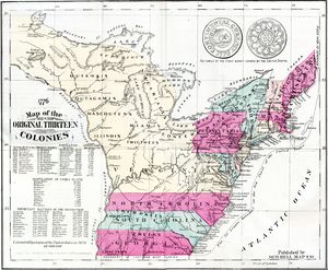 ![]() The thirteen colonies (shown in red) in 1775. | |||||||||||