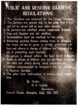 "The Gardens (Huangpu Park) are reserved for the Foreign Community".
