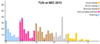 وحصلت تونس على 49 نقطة، وجاءت في الترتيب ال65 على قائمة الدول المشاركة في اولمپياد 2013.