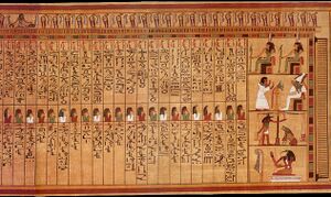 The Book of the Dead was an extensive collection of spells that included material from both the Pyramid Texts and the Coffin Texts. In the New Kingdom period, the Book of the Dead was normally recorded on papyrus. However, it could also be found on the tomb walls, coffins and the wrappings of mummies. Like the Coffin Texts, the spells illustrated within the Book of the Dead were used by everyone. These spells offered advice, protection and knowledge to the dead as they journeyed through the netherworld.[8]