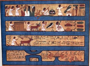 Sekhet-Aaru, the "Field of Reeds", was the final destination for all souls who had been granted rebirth. This concept evolved in the Fifth Dynasty.[44] Sekhet-Aaru was essentially thought to be paradise and encompassed this visualization. The Field of Reeds was visualized as a very lush region, filled with waterfalls among other natural wonders.[45] Egyptian images, such as the Papyrus of Nebseni, depicted the land as being divided into numerous sections. Each division was imagined to resemble island structures, in which travel by boat is necessary.[46]