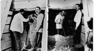 اثناء فتح مقبرة توت عنخ امون تم تكسير جدارية فرعونية لباب المقبرة - وادي الملوك 1922