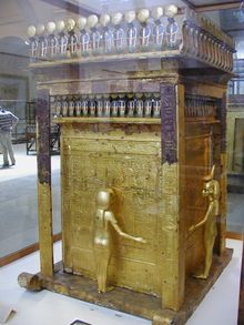 دولاب حفظ الأواني الكانوبية في مقبرة توت عنخ آمون .
