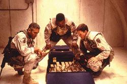 الملوك الثلاثة إنگليزية: three kings تم تصويره عام 1999 الفلم من بطوله جورج كلوني ومارك والبيرغ وآيس كيوب تصور أحداثه أربعه جنود يذهبون إلى جنوب العراق بعد نهاية الحرب عام 1991 لأخذ ذهب أخذه جنود الرئيس العراقي صدام حسين من الكويت بعد الحرب, ولكنهم يقومون بمساعدة الثوار العراقيين ضد نظام صدام حسين للهروب من العراق ويقومون بتوزيع الذهب لهم بعد أن يحصلون عليه ويدخلون في اشتباكات مع جنود صدام ويموت أحدهم وشارك في هذا الفيلم ممثلون عراقيون من بينهم الممثل العراقي قائد النعمان.