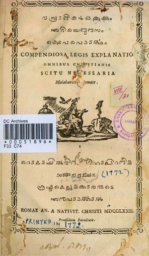 - ^ "Kerala / Kozhikode News : Copy of first book printed in Kerala released". The Hindu. 14 October 2005. Archived from the original on 27 March 2010. Retrieved 30 March 2012.