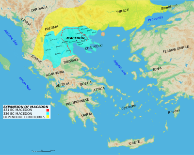 ![]() مملكة مقدونيا في in 336 ق.م. (برتقالي) | |||||||||||||||