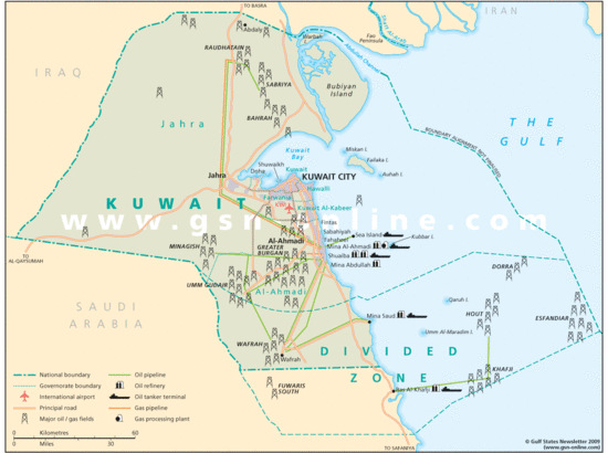 حقول نفط الكويت والمنطقة المحايدة وموانئ تصدير النفط.