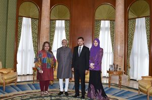 Mohammad Hamid Ansari with Al-Muhtadee Billah and Pengiran Anak Sarah in 2016