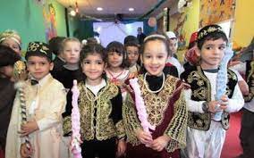 صورة لأطفال جزائريين مرتديين الزي التقليدي في احتفالات المولد النبوي.