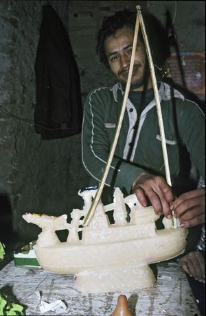 من التقاليد المصرية الاحتفال بالمولد النبوي بصنع الأشكال المختلفة من السكر. هنا رجل يصنع مركبا.