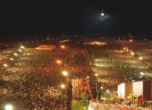 المسلمون السنة الماليزيون في احتفال المولد النبوي في العاصمة، پوتراجايا، 2013.