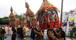 الاحتفالاتحمد وتسبيح وصوم ومواكب شعبية و Na`at (religious poetry), family and other social gatherings, decoration of streets and homes