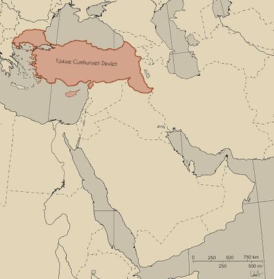 حدود تركيا مع كل من الشرق الأوسط وشرق أوروپا، حسب الميثاق الملي التركي.