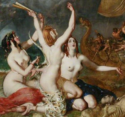 على الرغم من أن النداهات كانت تُصور تقليدياً كأنها كميرات حيوانية-بشرية، إلا أن إتي صورتها كشابات عاريات، في جزيرة مليئة بالجثث المتحللة. عند عرض اللوحة لأول مرة انقسمت الآراء حولها، حيث أعجب بعض النقاد اعجاباً شديداً بينما سخر منها آخرون واصفين إياها بأنها بلا طعم وغير مبهجة. وقد يرجع السبب في ذلك إلى حجمه اللوحة الكبير للغاية، 442.5 سم في 297 سم، ولم يتمكن إتي من بيعها في البداية، لكنها بيعت في نهاية العام بسعر جيد للتاجر دانيال گرانت من مانشستر. توفي گرانت بعد فترة قصيرة، وتبرع بها شقيقه إلى معهد مانشستر الملكي.