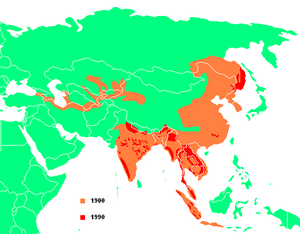 الانتشار الحالي      الانتشار في أواخر ع1800