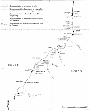 Lower Nubia shown as a list of monuments at risk in the 1960 UNESCO Courier