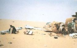 اصطدمت الطائرة أخيراً بكثيب رملي. قذف عرفات لمسافة ثلاثين متراً، وسط رمال الصحراء الليبية. كان جميع الركاب جرحى، ولكنهم أحياء ما عدا الطيارَين والميكانيكين.
