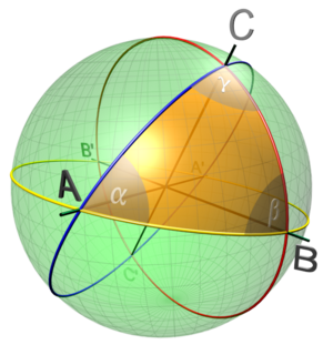 الهندسة الكرية Spherical geometry هي هندسة of the two-dimensional surface of a sphere.[أ] Long studied for its practical applications – spherical trigonometry – to navigation, spherical geometry bears many similarities and relationships to, and important differences from, Euclidean plane geometry. The sphere has for the most part been studied as a part of 3-dimensional Euclidean geometry (often called solid geometry), the surface thought of as placed inside an ambient 3-d space. It can also be analyzed by "intrinsic" methods that only involve the surface itself, and do not refer to, or even assume the existence of, any surrounding space outside or inside the sphere.