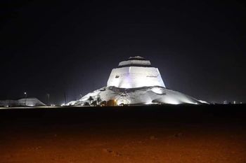 هرم ميدوم، في بني سويف، يضاء لأول مرة، يونيو 2020.