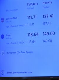 The rouble fell to record lows as Russians rushed to exchange money.[215][216][217][218][219] The Moscow and St Petersburg Stock Exchanges were suspended.[220] The Central Bank of Russia announced its first market interventions since the 2014 annexation of Crimea to stabilize the market. It also raised interest rates to 20% and banned foreigners from selling local securities.[221] The sanctions put Russia's sovereign wealth fund at risk of disappearing. Long lines and empty ATMs have been reported in Russian cities.[222][223]
