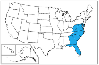 This division includes eight states and one district; Delaware, Florida, Georgia, Maryland, North Carolina, South Carolina, Virginia, West Virginia and Washington.[1] This division is also a recognized geographical division used by the United States Geological Survey.[2] All entities within the region apart from the District of Columbia and West Virginia border the North Atlantic Ocean.