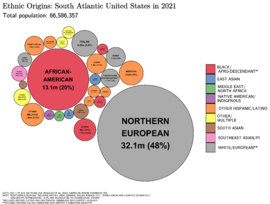As of 2010, the South Atlantic states had a combined population of 61,774,970. The South Atlantic states region covers 292،589 ميل مربع (757،800 km2). With the exception of West Virginia, the region has seen rapid population growth and economic development in recent decades.