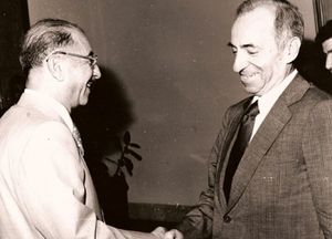 في الصورة من اليسار إلى اليمين: أحمد حسن البكر وميشيل عفلق.